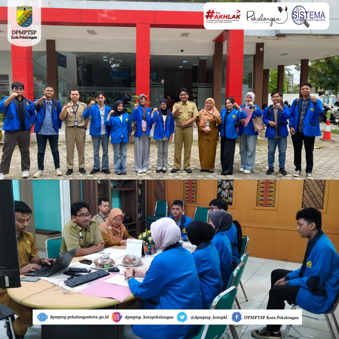 INFORMASI - Pada Hari Senin, 8 Desember 2025, Dinas Penanaman Modal dan Pelayanan Terpadu Satu Pintu (DPMPTSP) Kota Pekalongan menerima kunjungan mahasiswa Program Studi Manajemen Fakultas Ekonomi dan Bisnis Universitas Pekalongan dalam rangka kegiatan wawancara Mata Kuliah Manajemen Strategi.