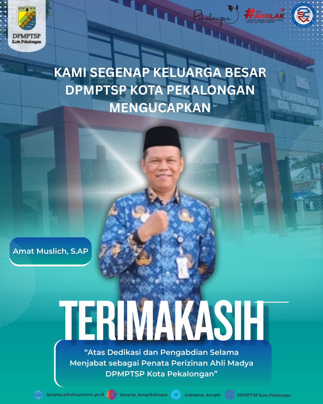 Semoga senantiasa amanah dalam menjalankan tugas dan tanggung jawab, serta mampu membawa kemajuan dan peningkatan kualitas pelayanan kepada masyarakat Kota Pekalongan. Dengan semangat kolaborasi dan inovasi, DPMPTSP Kota Pekalongan berkomitmen untuk terus memberikan pelayanan publik yang prima.